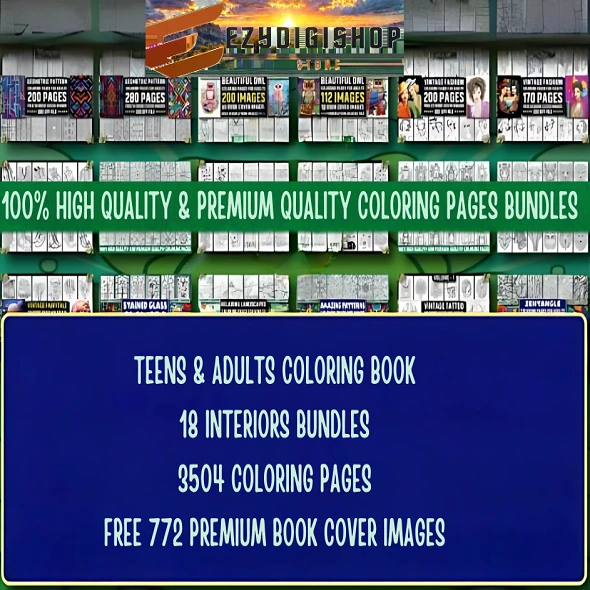 Unleash your child's creativity with the EZYDIGISHOP Kids Premium Coloring Pages Collection. This extensive collection features a variety of high-quality coloring pages and drawing guides, perfect for young artists. From whimsical creatures and intricate patterns to seasonal themes and everyday objects, this collection has something for everyone. Dive into hours of coloring fun and artistic exploration with the detailed and diverse designs provided. The collection includes 18 interiors bundles with 3504 coloring pages and 772 premium book cover images, ensuring endless coloring enjoyment.