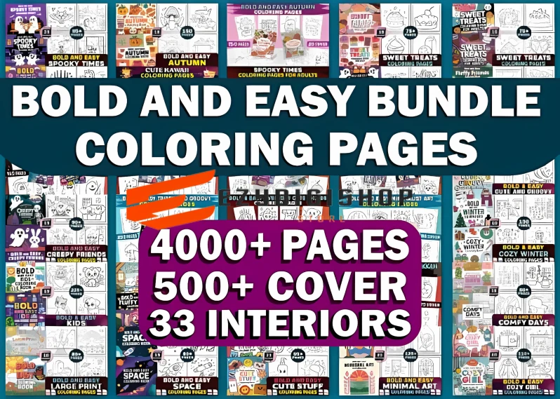 Discover the EZYDIGISHOP Kids Coloring Pages Bundle, featuring over 4000 pages, 500 covers, and 33 interiors for endless coloring fun